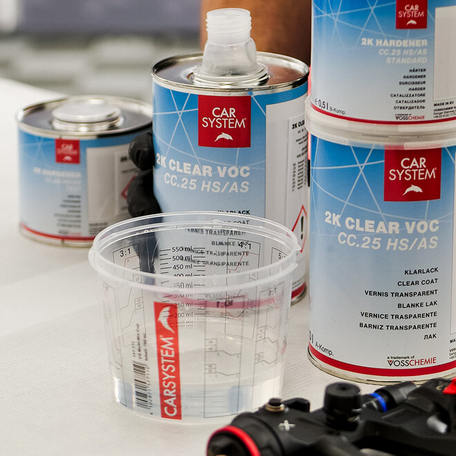 Carsystem 2K CLEAR VOC CC.25 HS/AS clear coat is a high-quality 2K clear coat for professional paintwork. It is ideal for painting individual parts as well as entire vehicle sections and can be used for all types of repairs. Thanks to its particularly user-friendly application, the clear coat impresses with its very high gloss level and excellent flow properties, even on vertical surfaces. The HS/AS technology ensures an even, permanently brilliant finish of the highest quality.