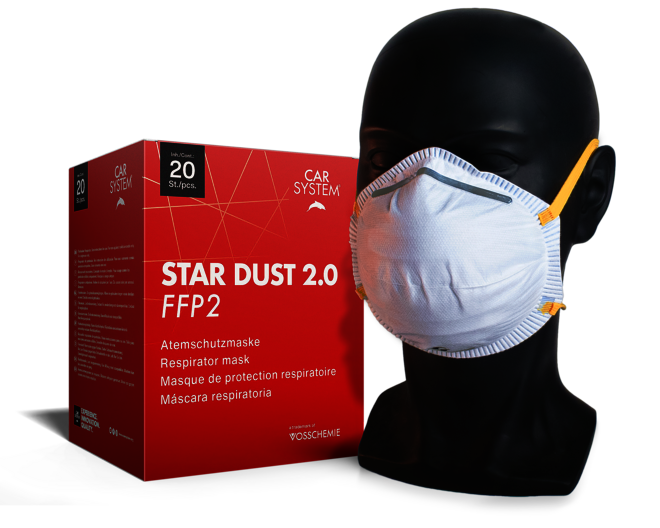 Masque de protection Carsystem Star Dust 2.0 FFP2 - sécurité, confort, fiabilité. Le masque de protection respiratoire Carsystem Star Dust 2.0 FFP2 assure une protection fiable contre les particules d’origine aqueuse ou huileuse, nocives pour la santé. Très confortable, même en cas d’utilisation prolongée, grâce à la tige en aluminium ajustable sur l’arête du nez, son doublage intérieur en matière douce et ses attaches élastiques. Peut se combiner avec le port de lunettes de protection, usage polyvalent. Conseils d’utilisation: le changer après chaque fin de cycle de travail, pour une protection constante.